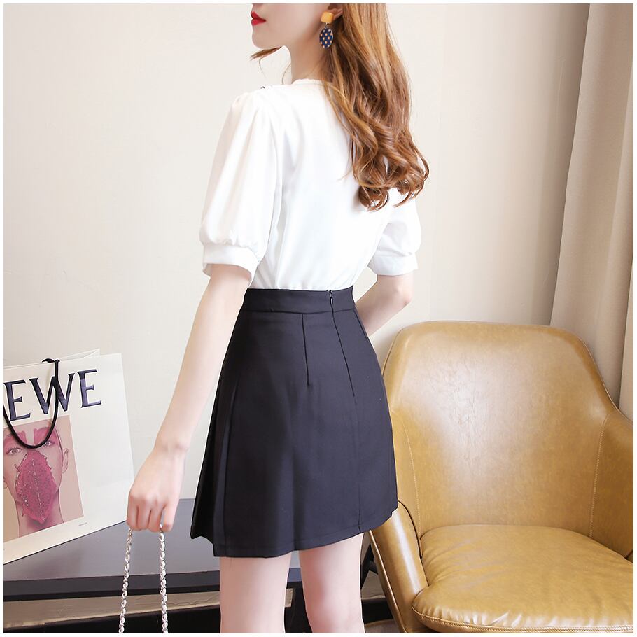 chiffon blouse and pleated skirt(white / pink) A0033
