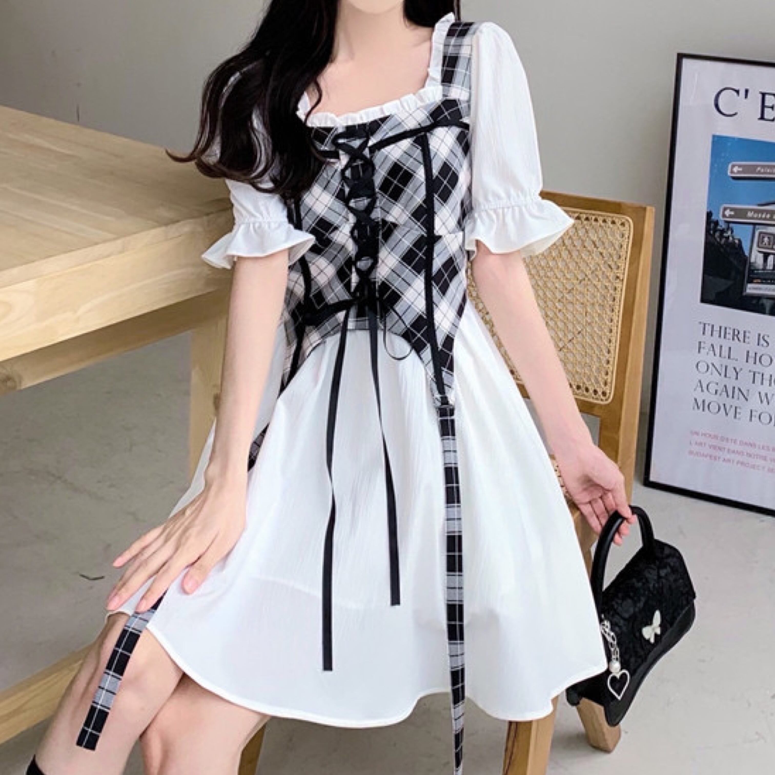 チェック柄のチュニック風デザインのワンピース♡