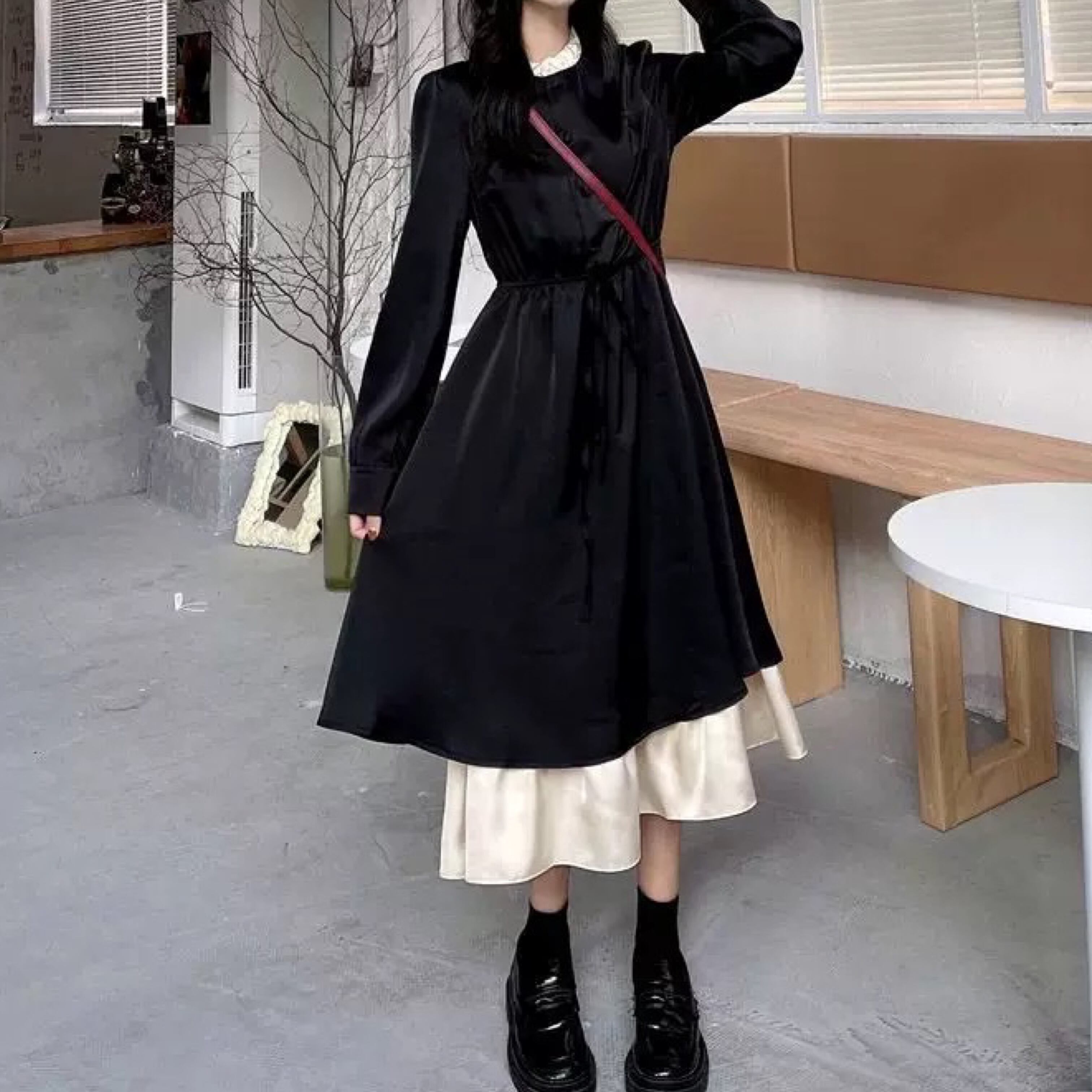 コントラストがおしゃれな重ね着風のワンピース♡