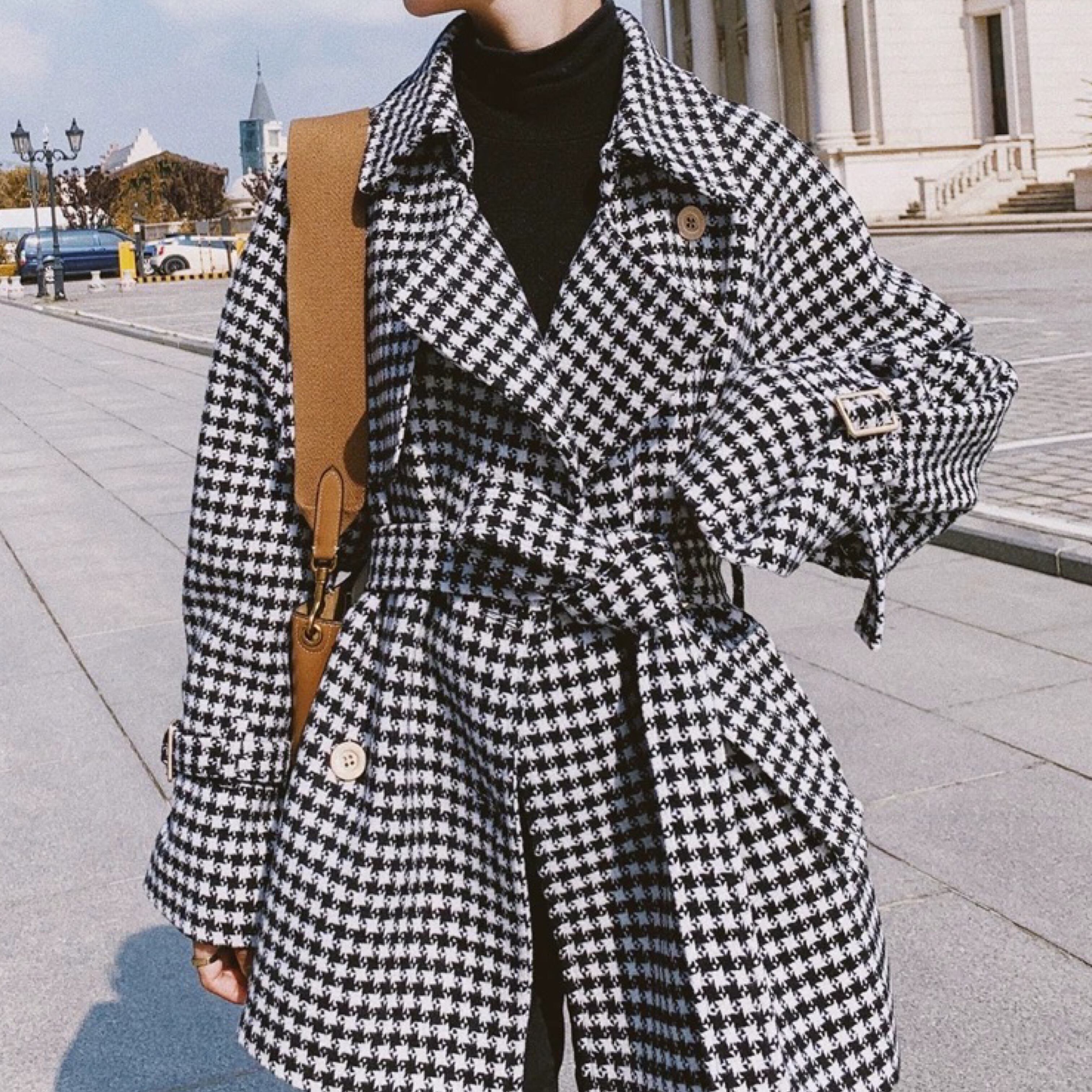houndstooth trench coat A0128