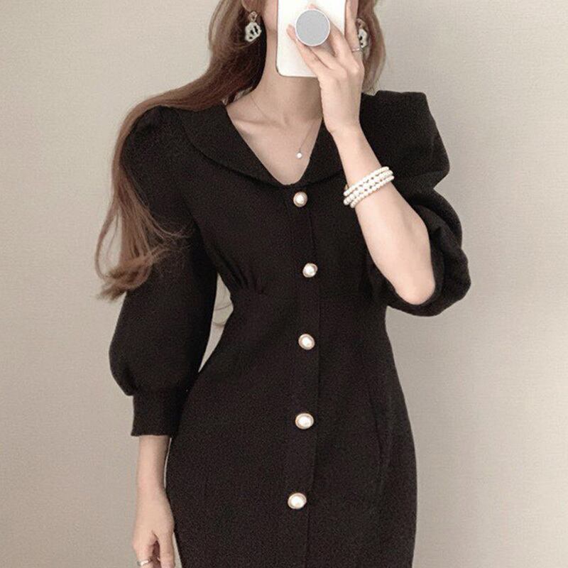 パフスリーブとパールボタンが上品なワンピース♡
