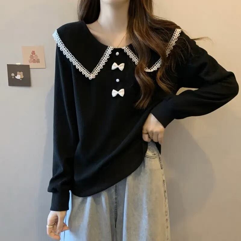 大きめ襟とリボンボタンが可愛らしいトップス♡