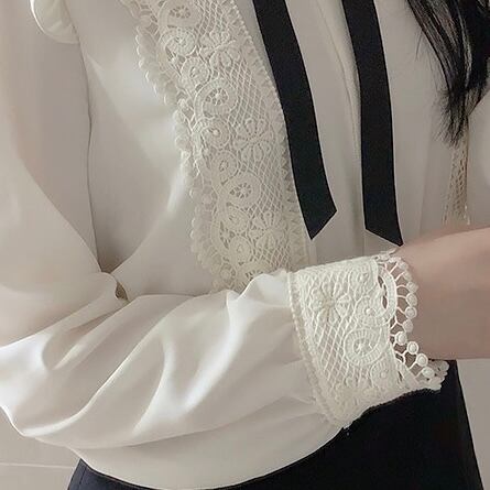 bijou ribbon tie lace blouse A0159