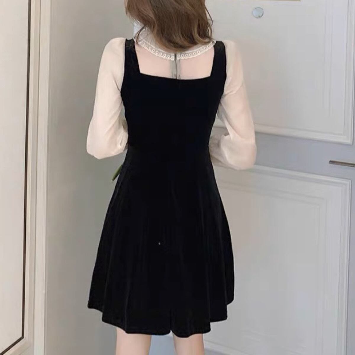 シアーブラウスとレイヤード風のベロアワンピース♡