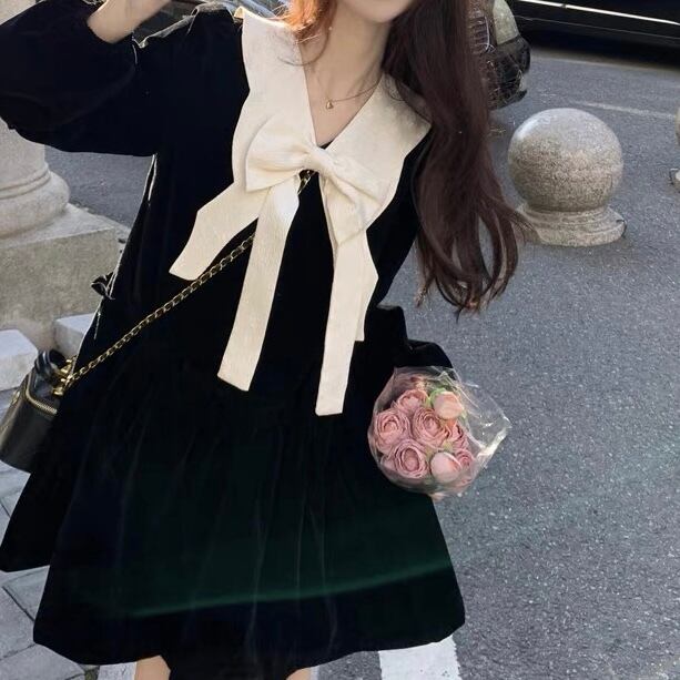 可愛さ倍増のセーラー襟&リボンワンピース♡