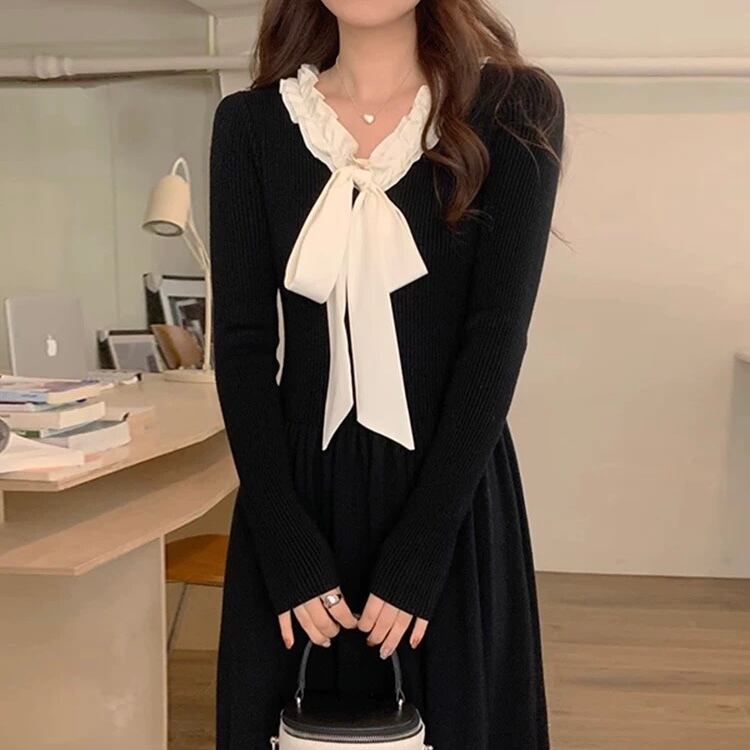 bowtie ribbon knit OP A0234